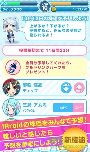1、玩家在游戏中将会与日本上市公司的股价拟人的虚拟少女们邂逅,并和他们之中的某人交往。