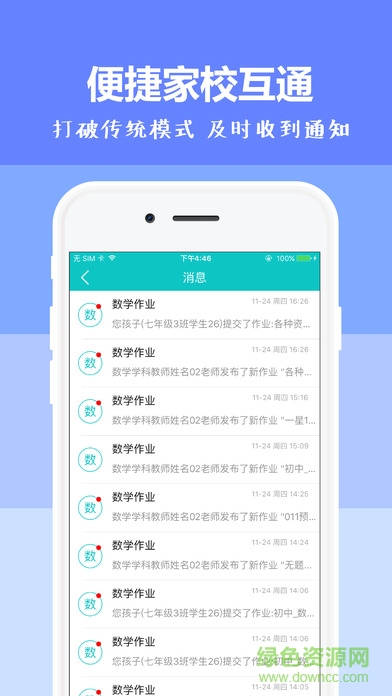 便捷家校互通——打破传统校讯通收费模式,家长可第一时间收到来自学校和老师的通知提醒。