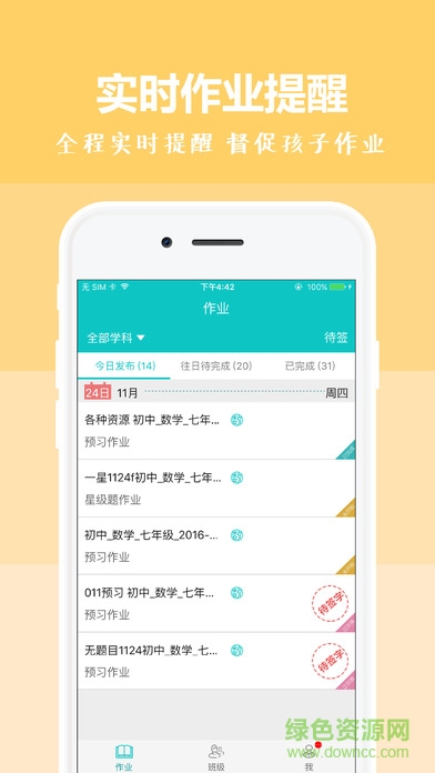 实时作业提醒——无论您身在何地,都可收到孩子作业全过程的实时提醒,真正实现不在孩子身边,也可监督孩子做作业;