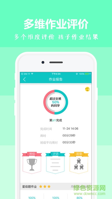 多维作业评价——多个维度评价孩子作业结果,包括笑脸、等级、评语、图章等;