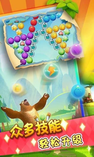 2、泡泡龙游戏我们见多了,但像《熊出没之泡泡大战》一样拥有超丰富关卡类型、超新颖玩法、超有趣道具、超Q萌熊大熊二角色的泡泡龙游戏,相信你一定没见过!