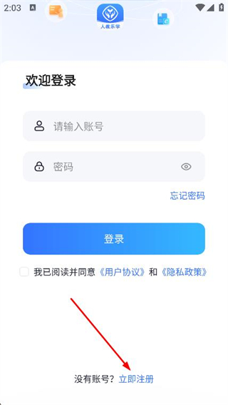 2、进入登录页面后,点击下方的没有账号?立即注册选项。