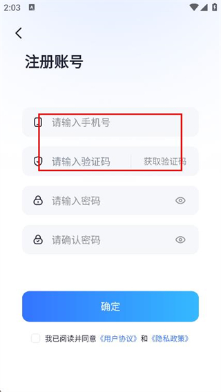 3、在注册账号页面的,输入需要注册的手机号和验证码。