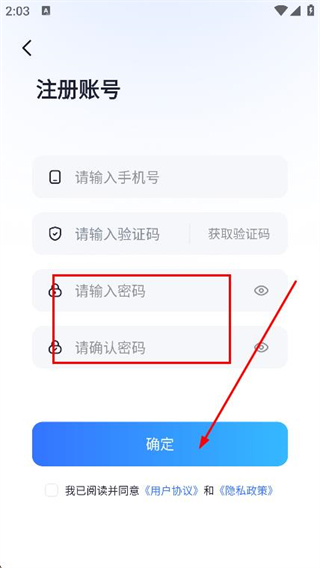 4、输入密码并确认,点击确定按钮,即可完成账号注册。