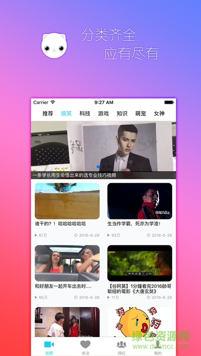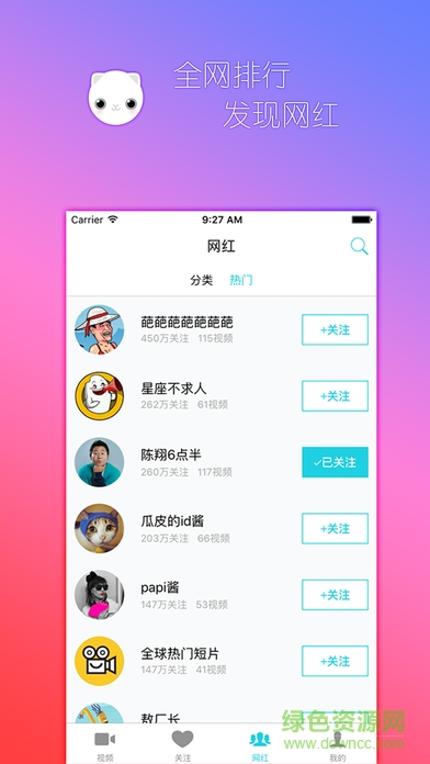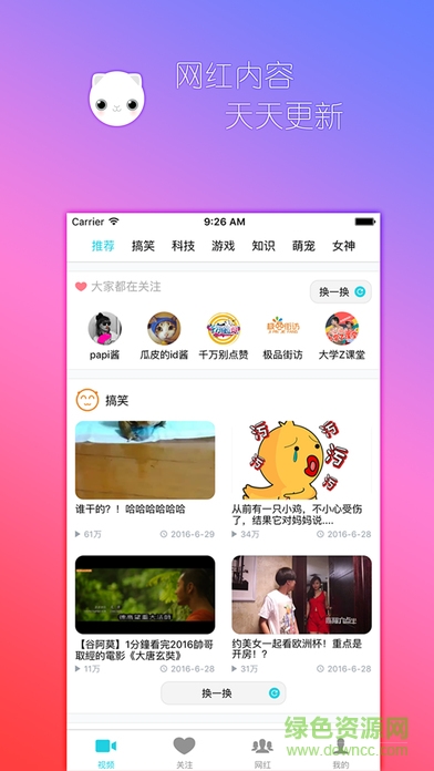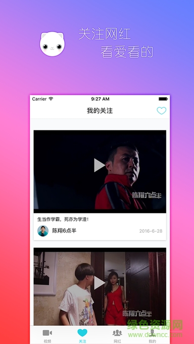 一款app,无需注册,一键关注对应网红.网红更新即时推送.不错过任何一个网红视频