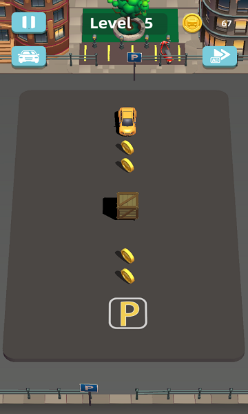 2、让停车3D为您服务,你所要做的就是画一条线,把车和停车位连接起来,然后您可以轻松完成您的停车,获得金币。
