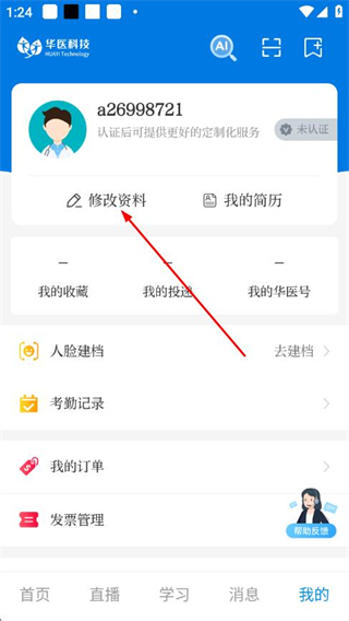 2、进入“我的”页面后,点击修改资料选项。
