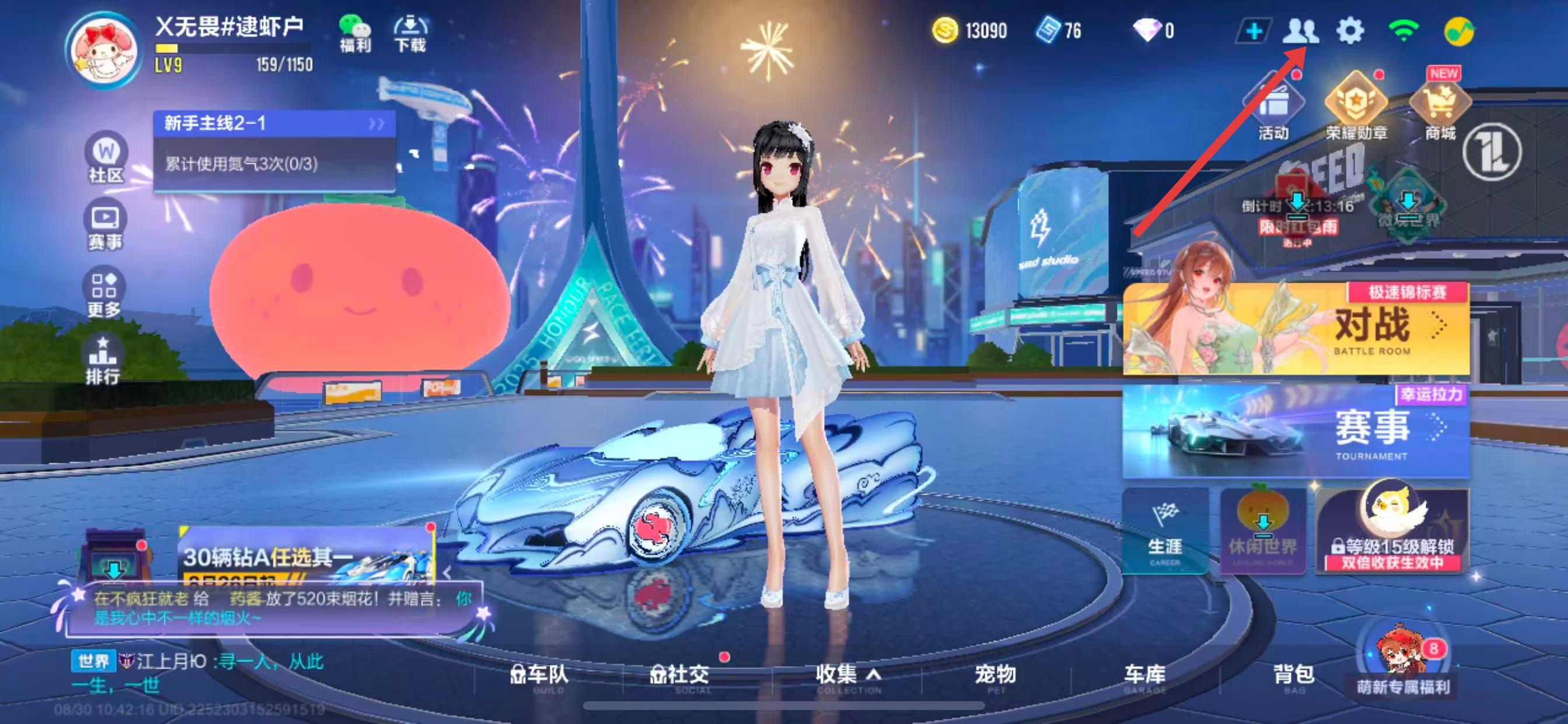 1、打开游戏,进入游戏主界面,点击屏幕右上方带有+号的好友图标 。