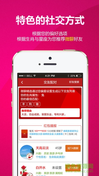 根据您的偏好选项,根据生肖与星座为您推荐微聊好友;
