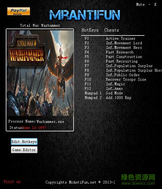 战锤全面战争十五项修改器是一款多功能的游戏辅助工具,现在来绿色资源网下载,进游戏使用相对应的热键就可以激活修改器,然后就尽情的享受无限金钱、无限人口、快速招募等多种功能,喜欢就来绿色资源网下载!