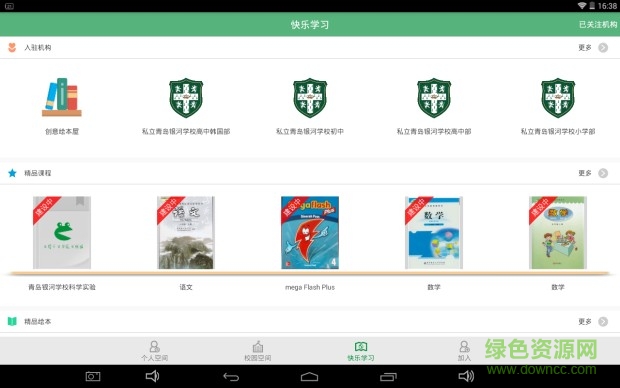 6. 1+e两栖学堂展示所有人入驻该平台的机构,用户可以关注和加入 机构,获取资源用于创作和学习,扩大自己的资源库,实现资源共享。