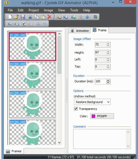 可以由一系列静止图像快速制作动画,修改现有动画,提取帧,支持调色板,可执行批处理操作来创建和修正动画。