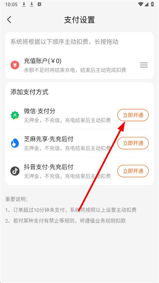 4、在支付设置界面,点击微信支付分对应的立即开通按钮,按提示完成微信支付的开通操作。