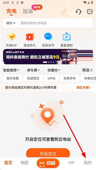 1、在快电app首页,点击右下角我的按钮,进入个人页面。