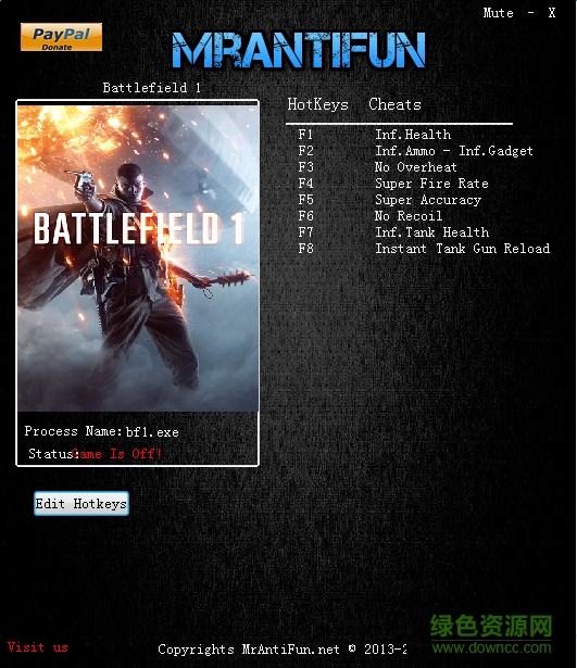 战地九项修改器是一款多功能游戏复制工具,专为《战地1》玩家准备,除了常见的无限生命、弹药这些基本功能外,还有坦克无限生命、坦克瞬间装载武器,有没有很强大,喜欢就赶紧来绿色资源网下载吧!