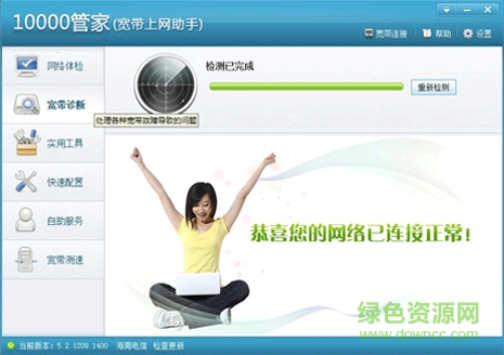 运行【微服】选择【宽带诊断】-【宽带故障诊断】进行故障的全面检测与处理。