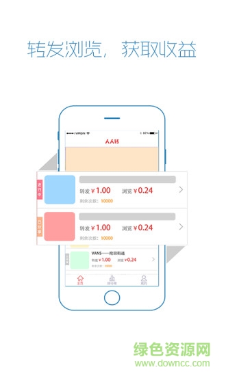 人人转ios版是一款专注于手机赚钱的软件,但是这款赚钱软件提供的赚钱的方法非常简单,只需要转发一些文章、广告等,就可以轻松获得一定的收益,可以将获得的钱提现,也可以留着购物,是一款很不错的软件哦,欢迎大家来绿色资源网下载使用。