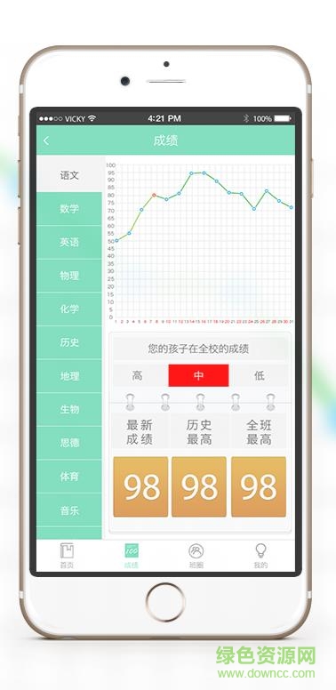 APP记录着全年每次每科目的成绩,经过一段使用时间以后,可以清晰的看到成绩变化的走向、把握孩子在学校中所处的位置,通过各种数据分析让孩子的学习更加便捷高效。