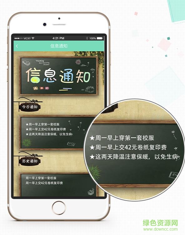 APP具备了主动推送功能,可以让家长的手机不管是在待机还是使用其他APP中,手机系统都会跳出推送提醒告知家长,及时获取最新的学校动态。