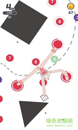 超级魔性的攀爬游戏,长腿攀爬者,角色的四肢都非常的发达,各种滑稽的动作,掌握好墙上面的节点,努力的往上爬。掌握简单而独特的攀爬机制,点击屏幕操作。挑战您掌握重力及测试您“意大利面条”四肢的极限!设计一套最萌的服装与朋友们分享,或者挑战自己攀爬到排行榜的顶端,又或者是发掘所有“攀爬者经”里滑稽的姿势。