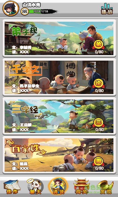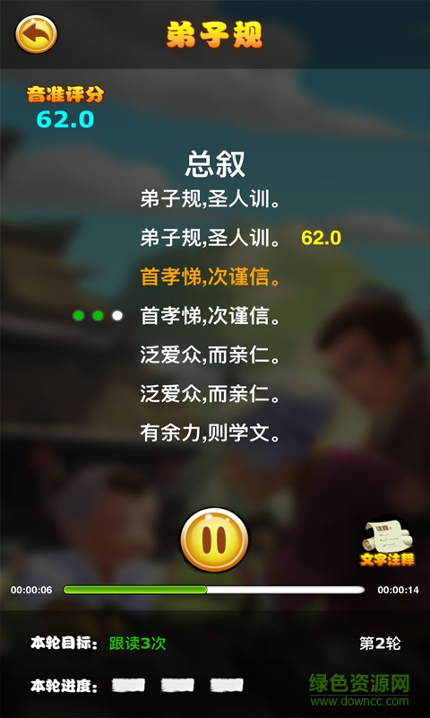 夫子学堂app是一款非常好用的国学app,适合儿童和青少年进行使用,包括弟子规、三字经、千字文、百家姓等,可以进行诵读和欣赏佳作,欢迎有需要的朋友到绿色资源网下载使用!