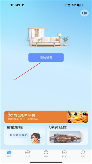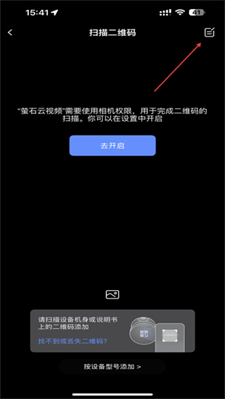 1、启动萤石云视频,在首页点击添加设备的按钮。
