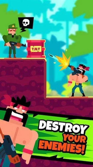 英雄特战队是一款以闯关类玩法为主的射击游戏,英雄特战队游戏的关卡和场景众多,融入了物理类的玩法模式,玩家将需要通过射击来干掉所有的敌人,解锁新的关卡,完成不可能完成的任务。