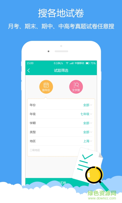 【3】根据年份、地区筛选试卷,设有中高考真题/模拟题、自主招生题、期中期末试题、单元测试等