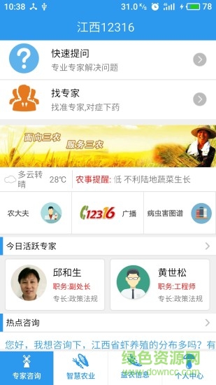 江西12316安卓版是一款非常好用的全方位农业服务手机软件,可以向专家咨询相关的农业问题,可以进行农产品交易,欢迎有需要的朋友到绿色资源网下载体验!