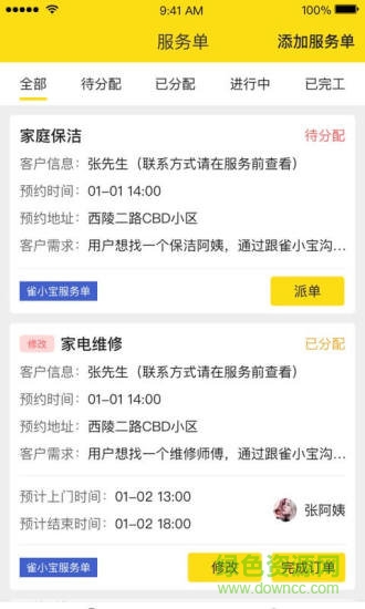 雀总管是款工单全流程管理应用,帮助维修,量体裁衣,保洁,母婴护理,皮具护理,搬运等行业的雀保供应商完成派单场景的信息化,提升团队协同效率。由湖北雀保大数据信息技术有限公司提供专业运营及服务,由宜昌快马仕网络科技有限公司全程提供技术支持及维护。