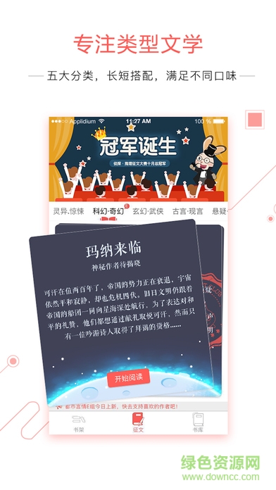小红花阅读app是一款专注于手机看小说的软件,用户有了这款软件可以阅读任何自己想看的小说类型,如果你对写作也有兴趣的话也可以将自己写的文章发表出来,所以在这里你既可以是读者,也可以是作家。这是一个很强大的阅读软件,欢迎有需要的朋友来绿色资源网下载。