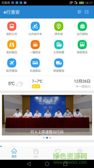 e行淮安手机版是一款专为江苏淮安地区的朋友们提供出行服务的手机客户端,在这里,你不仅可以一键了解最新路面地区实时路况,还可以查看未来的天气预报,感兴趣的朋友们赶紧来绿色资源网站下载吧!
