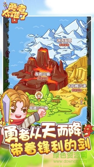 勇者太难了游戏中有各种不同的场景玩家可以自由的选择切换,和不断的提高自己的攻击力、防御能力等,还有各种不同的道具协助你的战斗喔,各种不同的冒险等你前来挑战喔。
