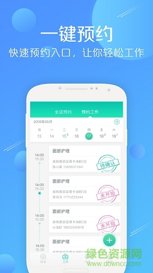 一键预约顾客。工作进度实时掌握,消息自动提醒