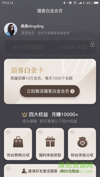 【猫客】用户可在猫客页面通过完成任务获取会员资格,猫客分为白金会员和黑金会员,用户完成不同任务获得不同会员资格。成为会员后,可选择一件商品免费领取,并解冻一部分猫币,成为猫客可享受其他猫客权益。