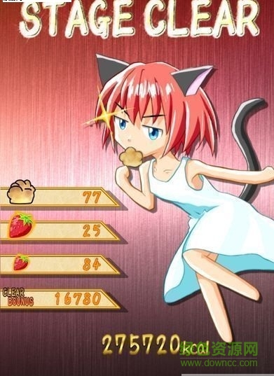 2、向上拖拽猫耳娘拾取掉落的美味水果。