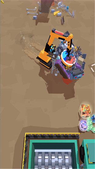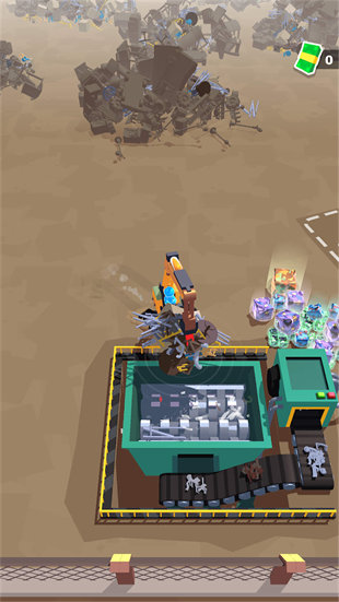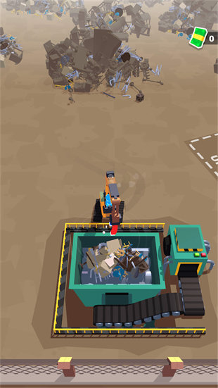 用垃圾处理工具完成任务,使用磁铁和垃圾清运车处理后方的所有垃圾,赚取收入。
