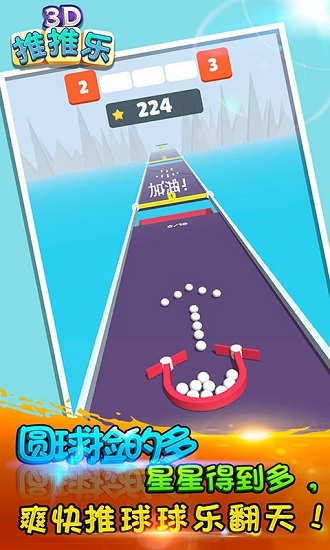 3D推推乐是一款趣味推球游戏,能够帮助你轻松消除进行闯关,只要你捡到足够多的圆球就可以顺利通关,而且你得到的星星也多哦,游戏界面精美,操作简单,轻松上手,给玩家带来了更具有挑战性、趣味性的游戏体验,是一款值得下载试玩的游戏!