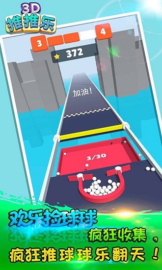 3D推推乐手游是一款高质量的趣味推球游戏,轻松有趣的闯关消除玩法,只有在短时间内迅速收集,就可以闯关成功,不断前进快乐收集,一定要在关卡结束前,收集到更多的球球才能过关啦。游戏关卡场景内容丰富有趣,很有挑战。
