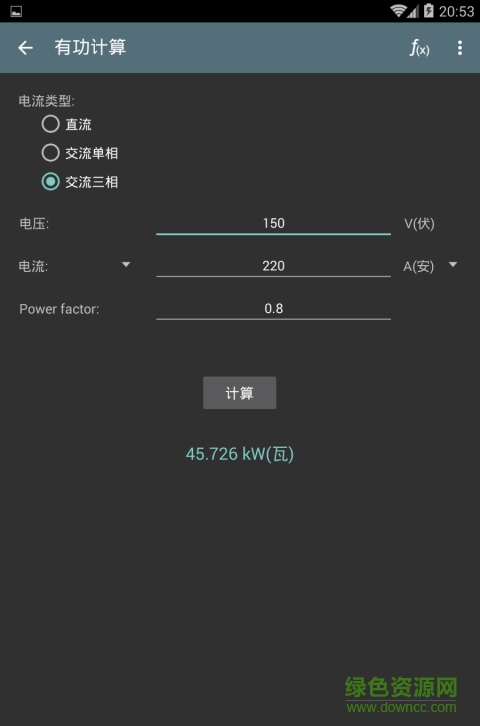 电工计算器是一款专业的电工专用计算器软件,它能很好的帮助用户快速计算出各项参数的结果,功能强大,计算类型多种多样,并且完全免费使用,有需要的朋友可以下载使用!