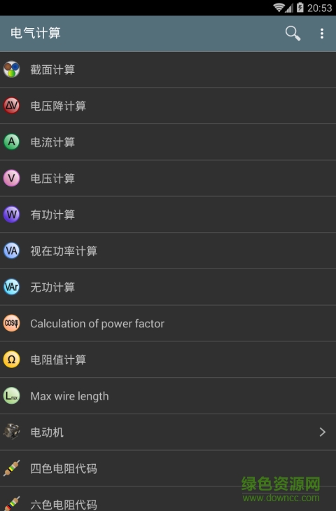 电工计算器汉化正式版 6.3.6(electrical calculator)是一款电工计算器去广告正式版,完全汉化打造而成的中文版本,此版本为专业版pro版本,已经解锁全部功能,十分好用,您还在等什么?喜欢就来下载体验呗!