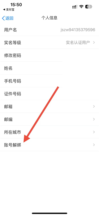 3、在个人信息页面中,找到账号解绑选项并点击,进入账号解绑的操作页面。