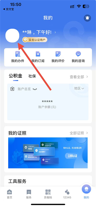 1、在苏服办app首页点击我的选项,进入个人页面。