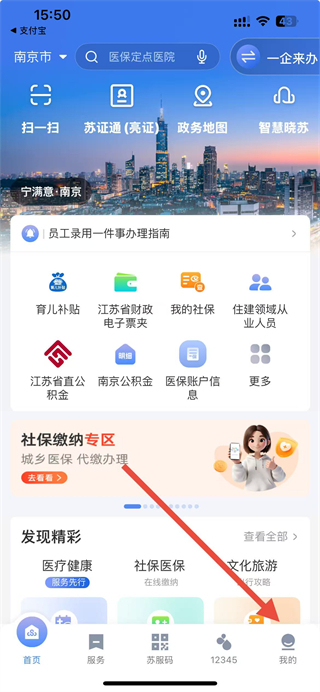 1、在苏服办app的首页界面中,点击底部我的选项,进入个人页面。