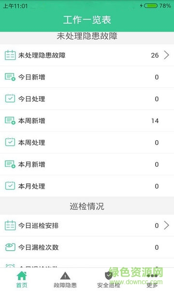 可以统计本月,本周的故障隐患,并且可以查看上报的故障隐患信息。