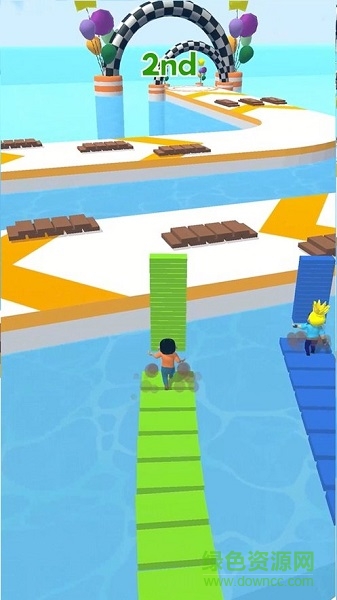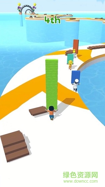 收集砖头,找个位置放下砖头抄个近道,爽感加倍,收集砖头,跟对手赛跑。如果你足够聪明,那就别着急,搭建桥梁,抄近道直达终点,闯关从未如此时尚,超级简单的游戏玩法,极易上手。