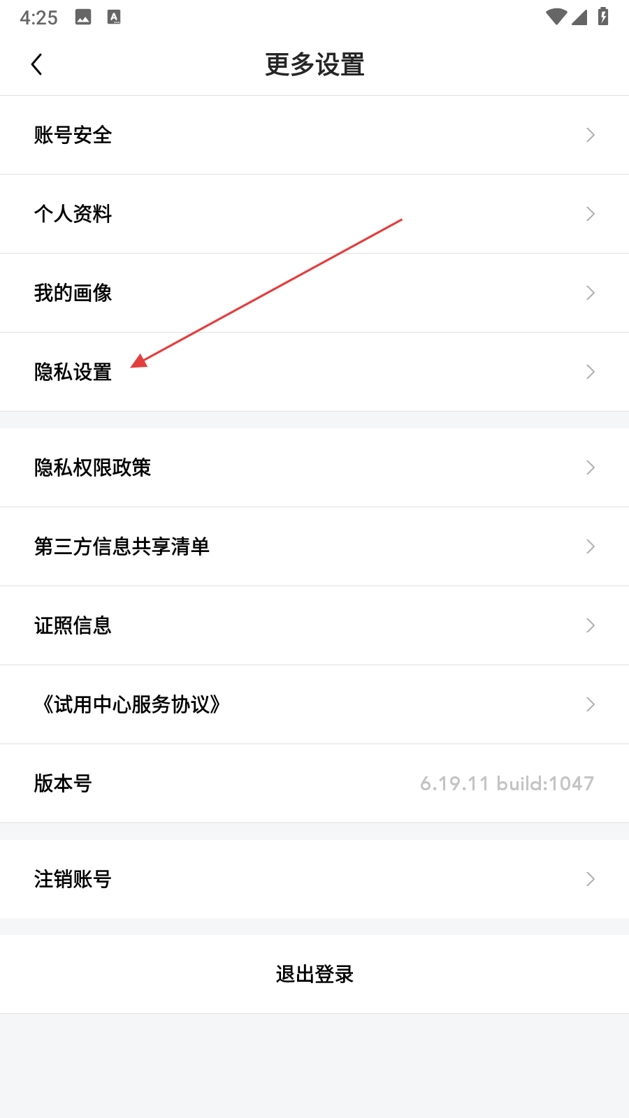 2、在设置页面中,点击隐私设置选项,进入隐私设置界面。
