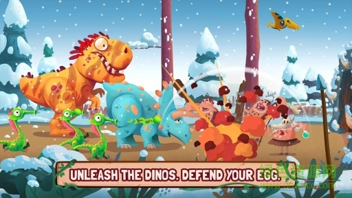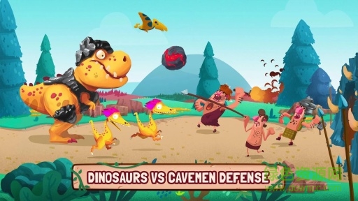 2、游戏中,玩家要帮助恐龙防御原始人。玩家可以控制各种恐龙去打击狂奔而来的原始人。