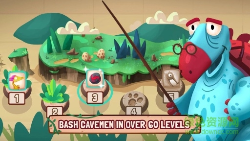 2、邪恶的原始人是恐龙的敌人,总是威胁到它们的愉快生活,来帮助恐龙对付原始人吧!