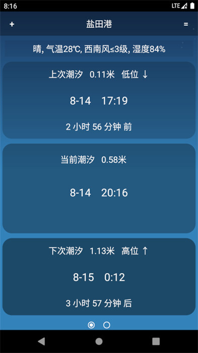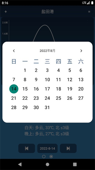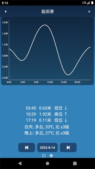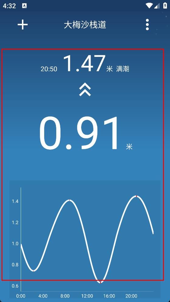 4、选择完成后,即可查看该地点的潮汐信息,包括潮高和潮汐变化曲线等。